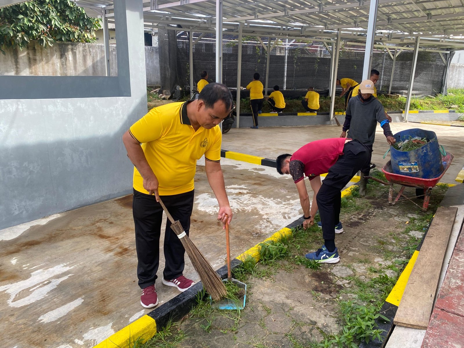 Pembagian tugas dilakukan secara sistematis. Personel Samapta difokuskan pada area pintu masuk dan halaman depan, tim SPKT mempercantik area pelayanan publik, sementara satuan kerja lainnya bertanggung jawab terhadap kebersihan dan kerapian ruang kerja masing-masing.