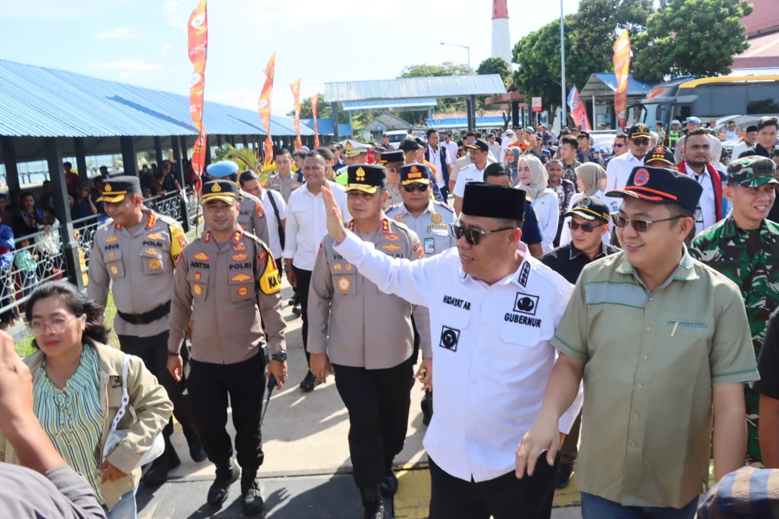 Gubernur Provinsi Kepulauan Bangka Belitung, Hidayat Arsani, bersama Kapolda Kepulauan Bangka Belitung, Viktor T. Sihombing, meninjau langsung arus mudik Lebaran di Pelabuhan Tanjung Kalian, Kabupaten Bangka Barat, Minggu.