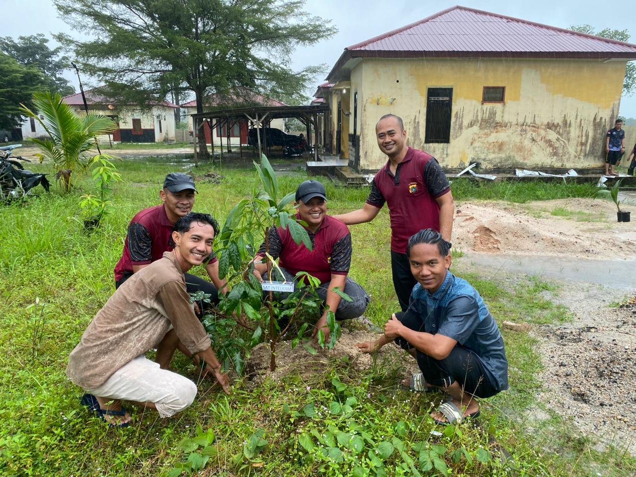 “Hari ini kita bersama-sama menanam pohon walaupun cuaca hujan. Jangan takut air, karena kita melakukannya bersama-sama. Setiap subsatker wajib menanam pohon dan menandai pohon yang ditanam sebagai bentuk tanggung jawab,” ujar Kapolres di sela kegiatan.