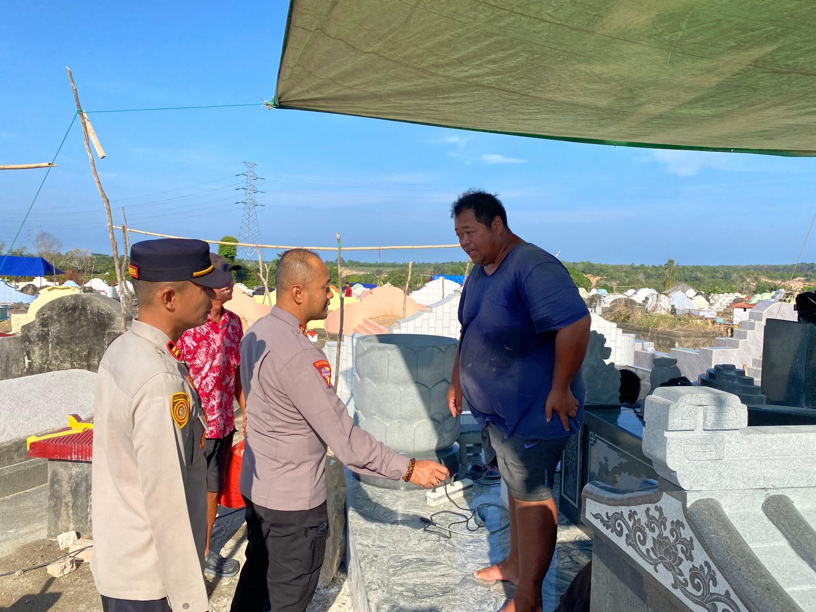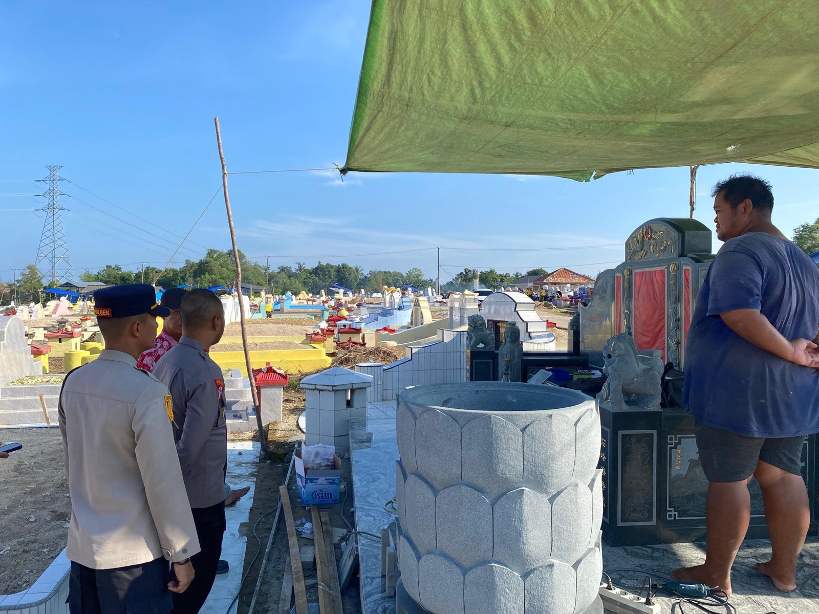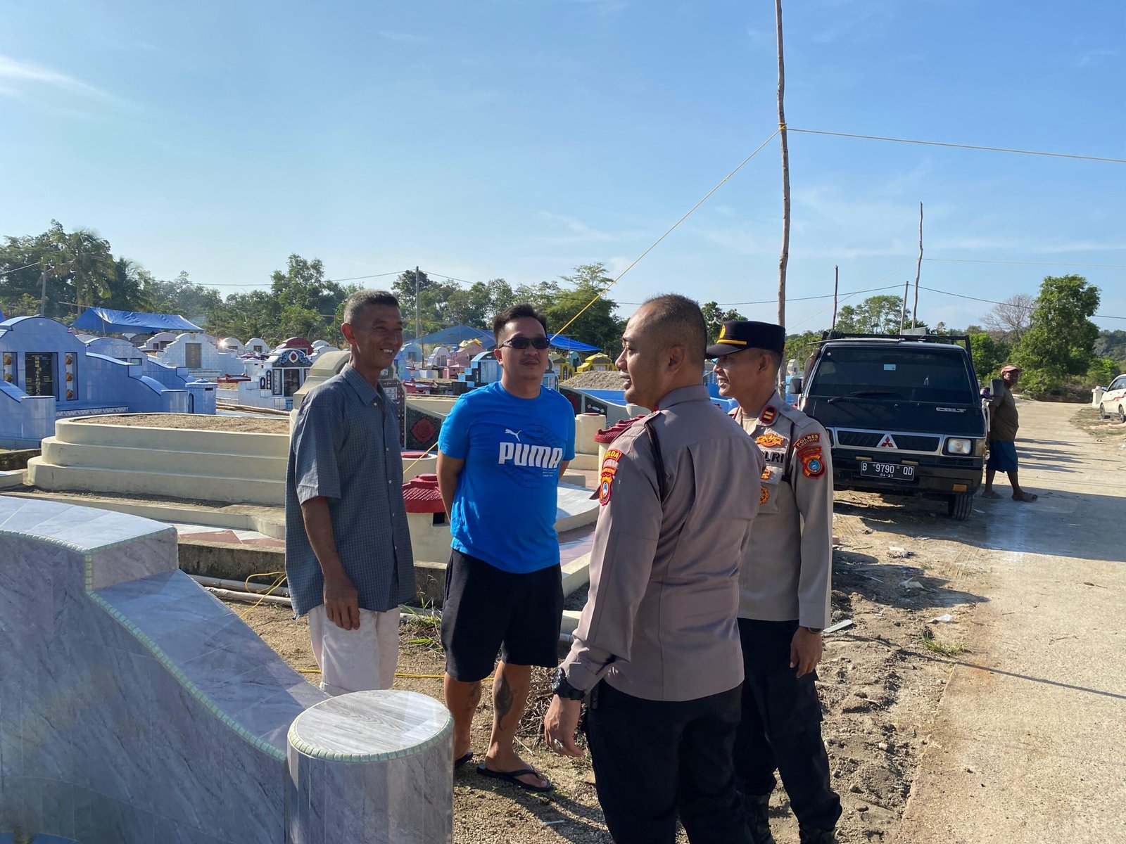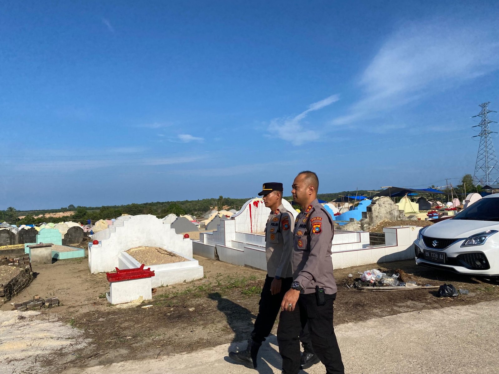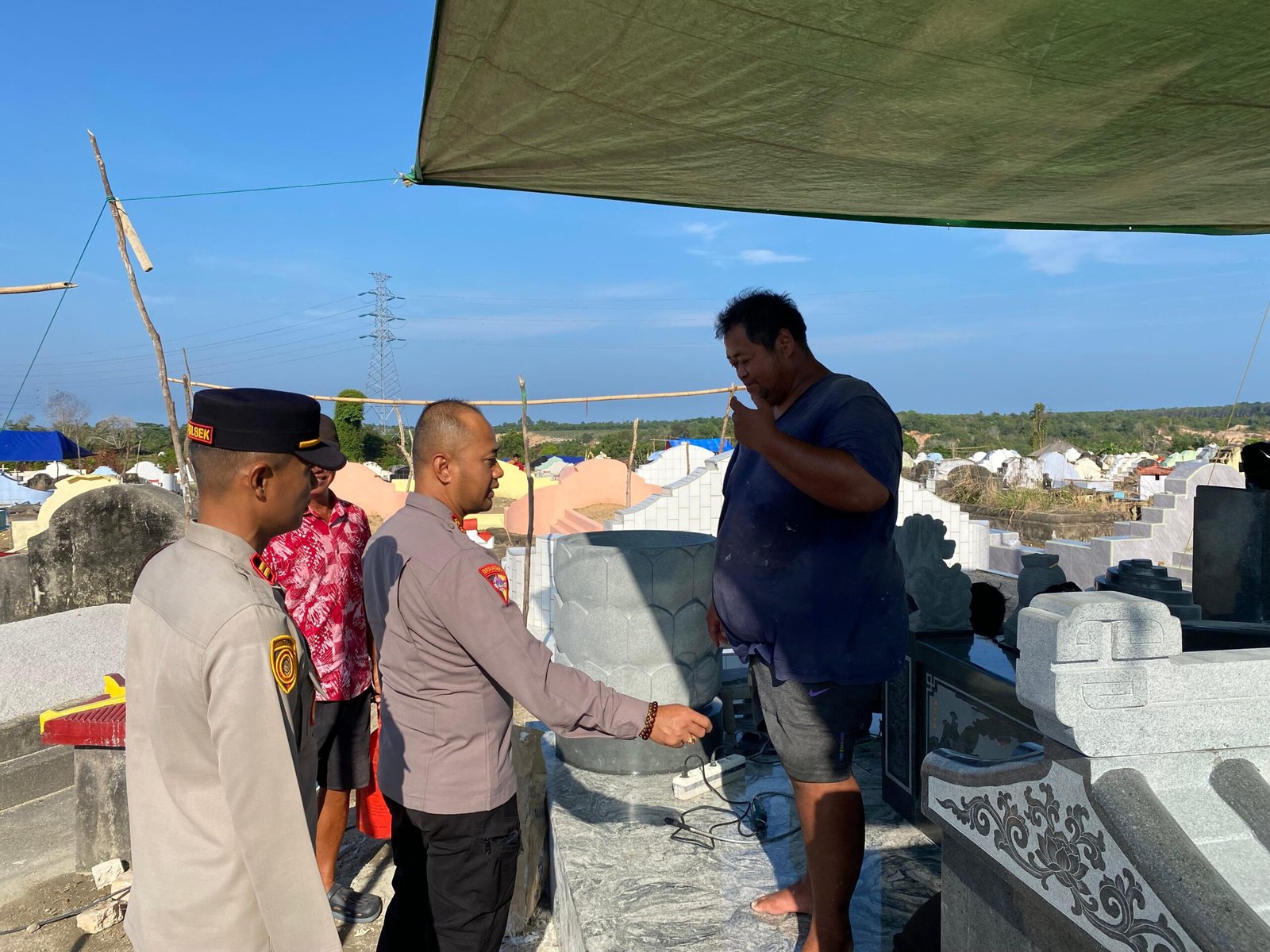 Pengecekan dilakukan di area pemakaman, bersamaan dengan kegiatan kurve (bersih-bersih) yang dilaksanakan oleh personel Polres Bangka Barat sebagai bagian dari persiapan menyambut kegiatan masyarakat.