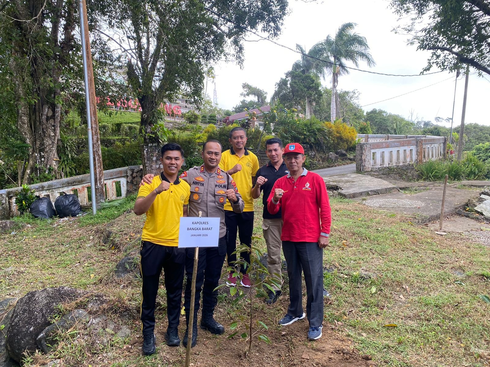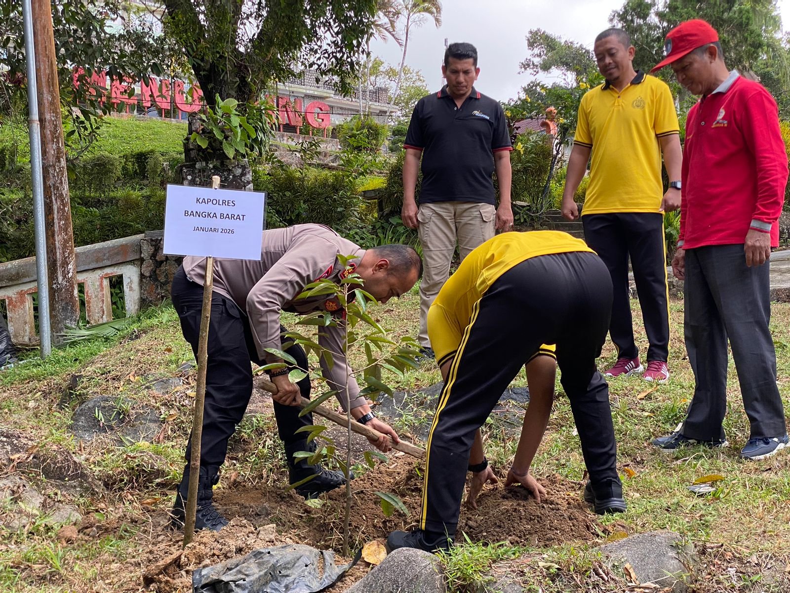 Upaya pelestarian lingkungan kembali digaungkan dari kawasan bersejarah Pesanggrahan Menumbing, Kecamatan Mentok, Kabupaten Bangka Barat. Jumat pagi, Kapolres Bangka Barat AKBP Pradana Aditya Nugraha, S.H., S.I.K., turun langsung menanam pohon endemik Bangka, durian Namlung, sebagai simbol komitmen menjaga alam dan warisan sejarah daerah.Jumat 23 Januari 2026