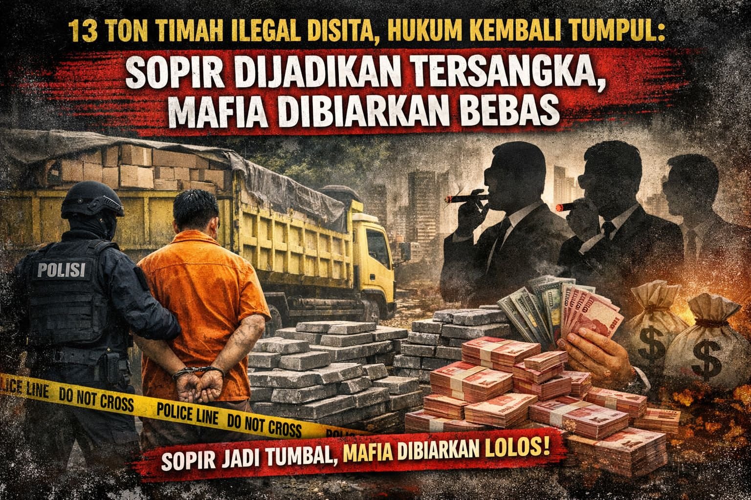 Jejak Berita .87.com.PANGKALPINANG MIOnline.klick – Pengungkapan penyelundupan 13 ton balok timah ilegal oleh Polresta Pangkalpinang seharusnya menjadi momentum penting untuk membongkar mafia timah yang selama ini bercokol di Bangka Belitung. Namun, publik kembali dibuat kecewa karena hingga kini aparat baru menetapkan sopir truk sebagai tersangka.