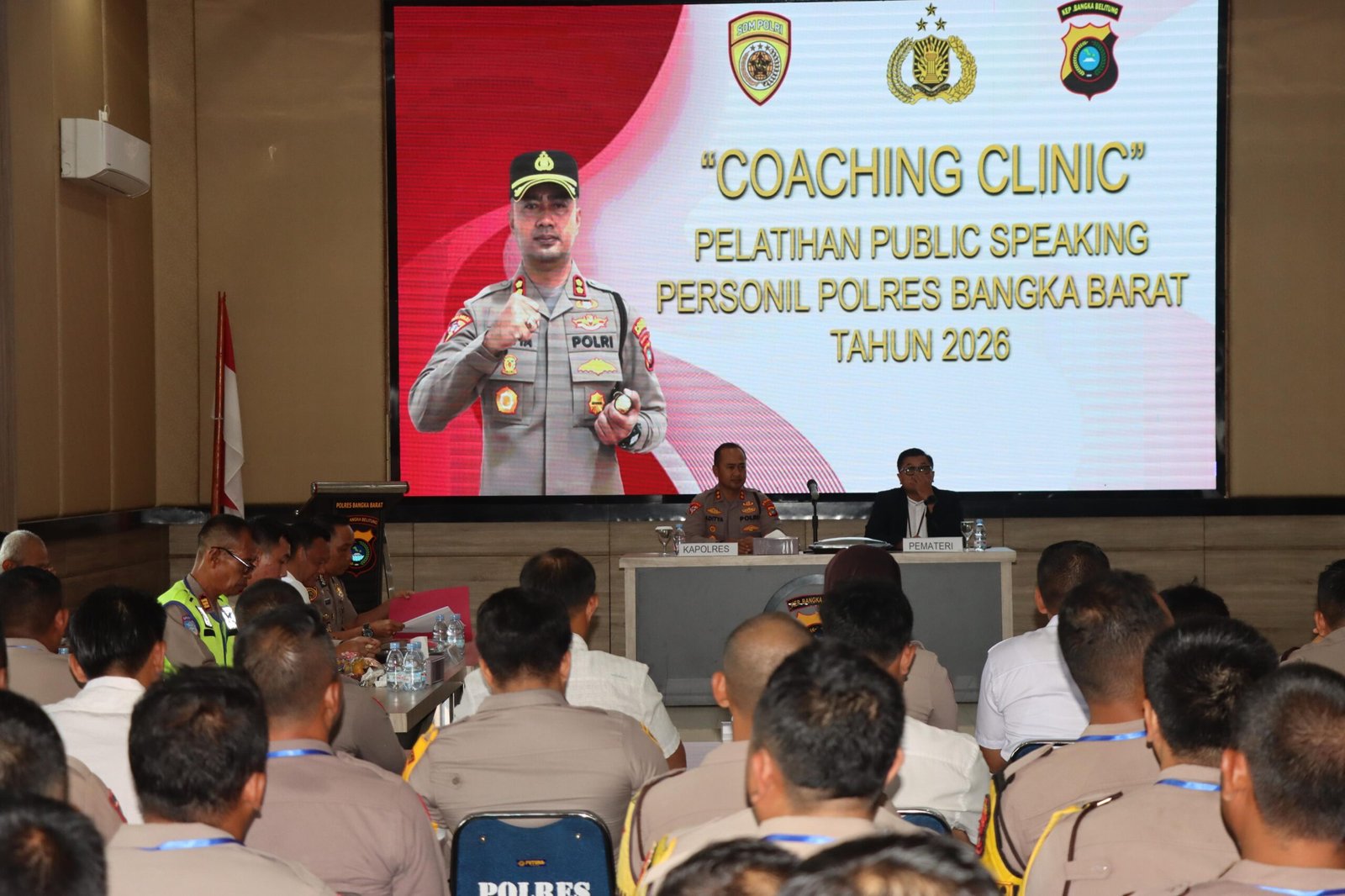 Melalui Pelatihan Public Speaking Personel Polres Bangka Barat Tahun 2026, sebanyak 110 anggota kepolisian dari berbagai satuan dibekali kemampuan berkomunikasi yang efektif. Mereka berasal dari jajaran pejabat utama, kapolsek, hingga bhabinkamtibmas—anggota yang menjadi garda terdepan pelayanan kepolisian di lapangan.