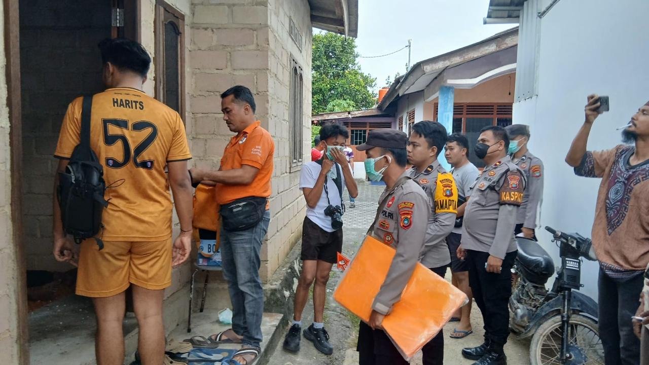 Proses evakuasi dilakukan oleh personel Sat Reskrim Polres Bangka Barat dengan melibatkan Unit Inafis, SPKT, Sat Intelkam, serta unsur Polsek Mentok.