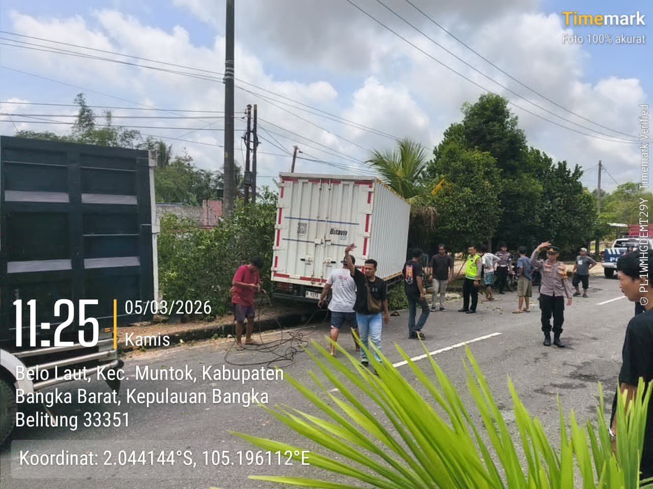 Personel Polres Bangka Barat bergerak cepat menindaklanjuti laporan masyarakat terkait kecelakaan lalu lintas tunggal yang terjadi di Jalan Raya Pal 3, Kecamatan Mentok, Kabupaten Bangka Barat, Kamis (5/3/2026) sekitar pukul 09.40 WIB.