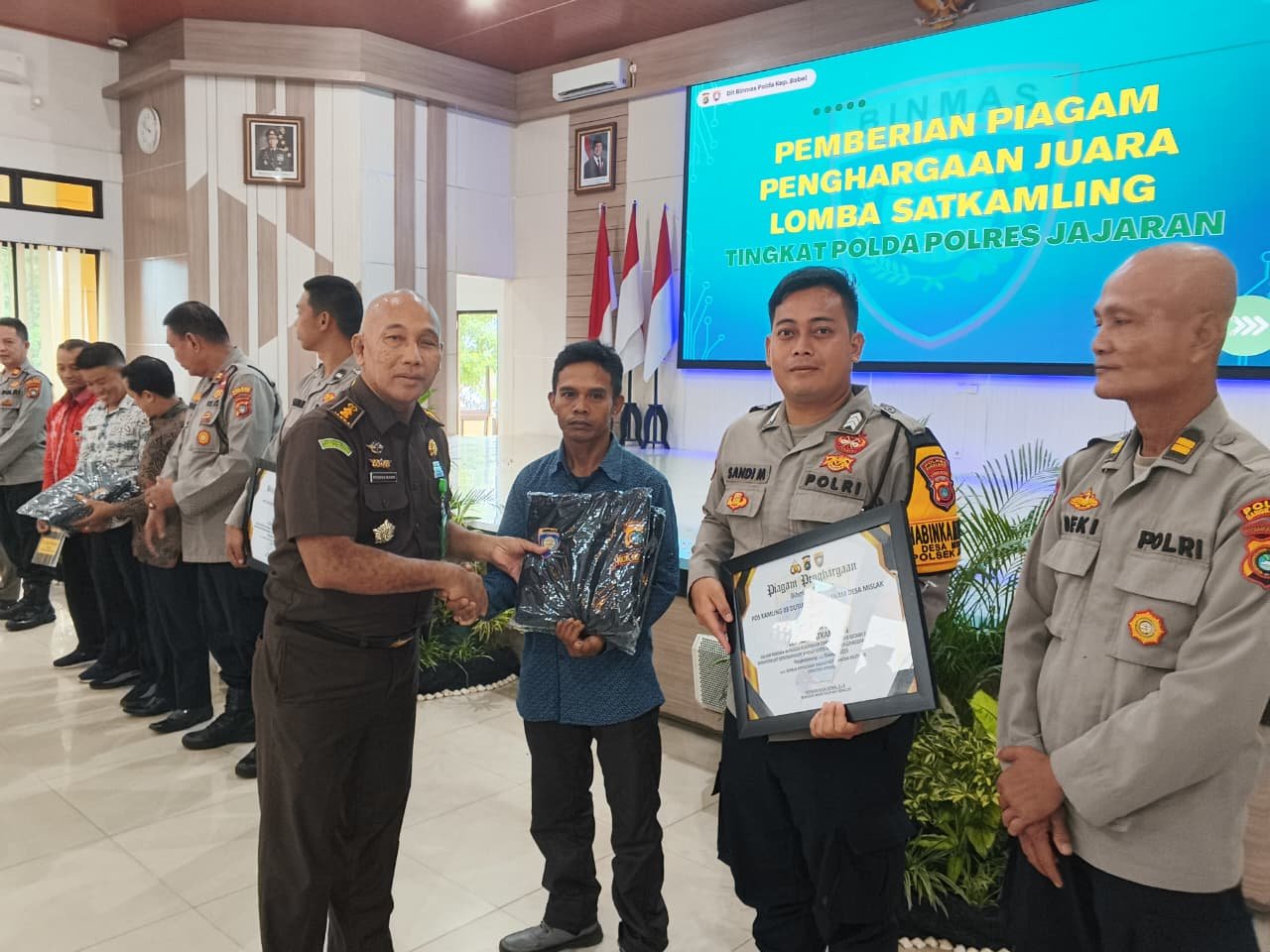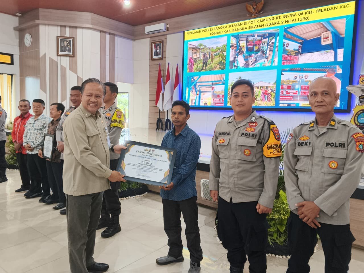 Dalam kegiatan tersebut, penghargaan diterima oleh Kasat Binmas Polres Bangka Barat, Bhabinkamtibmas Desa Mislak Brigpol Sandi Miranda, serta Ketua Poskamling Air Sikaw, Aprisa Saputra.